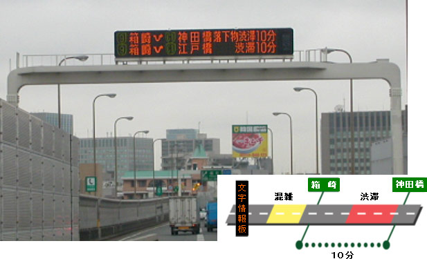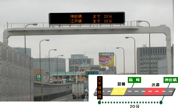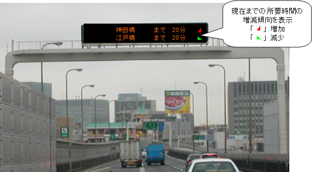 (渋滞の長さと所要時間とを交互に表示します。)