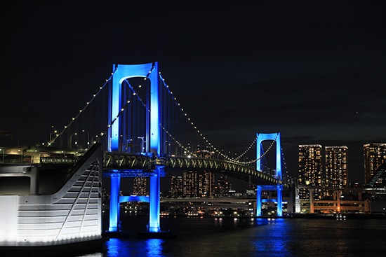 首都高速道路株式会社は、貴重な水資源や健全な水循環についての理解と関心を深めることを目的に定められた「水の日」の趣旨に賛同し、「水の日」である8月1日にレインボーブリッジの主塔を青色に連続点灯します。
